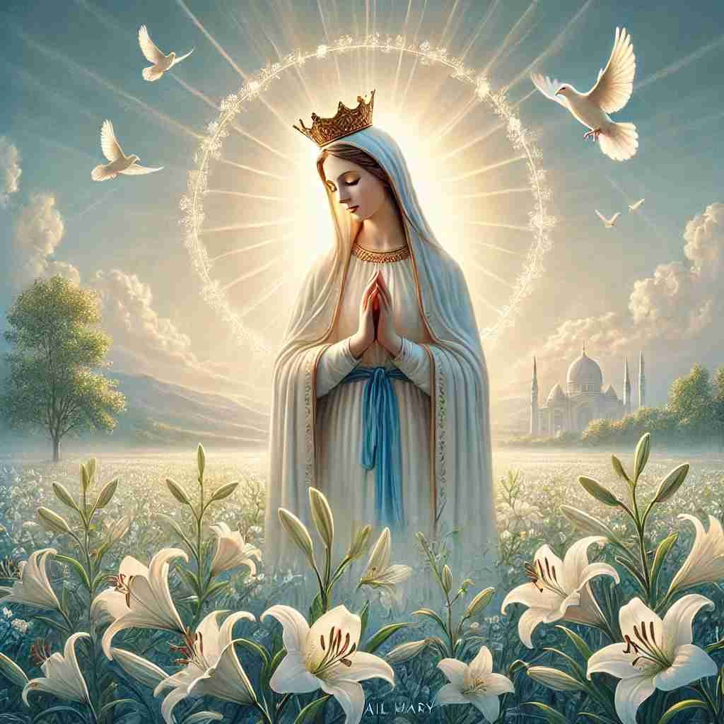 Dios te salve, María; llena eres de gracia; el Señor es contigo; bendita tú eres entre todas las mujeres, y bendito es el fruto de tu vientre, Jesús. Santa María, Madre de Dios, ruega por nosotros, pecadores, ahora y en la hora de nuestra muerte.